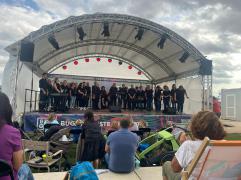 Im Rahmen des begleitenden Kulturprogramms hatte Canto Allegro einen einstündigen Auftritt in der Freilichtbühne am äußersten Ende der Spinelli-Anlage.